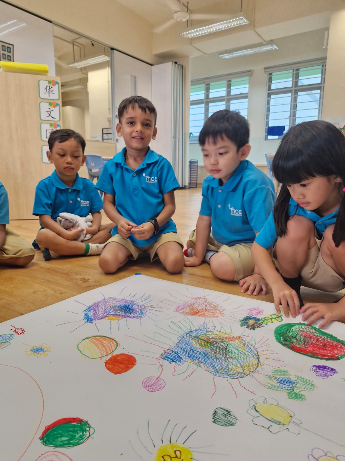 Day 1: Social Well-being Activity - Bond Well with peers The teacher will read the story The Dot. As a class, children will take turns adding to a large sheet of paper, discussing their ideas before drawing. They will use sentence starters such as, “What should we draw next?” and “Can I draw now?”