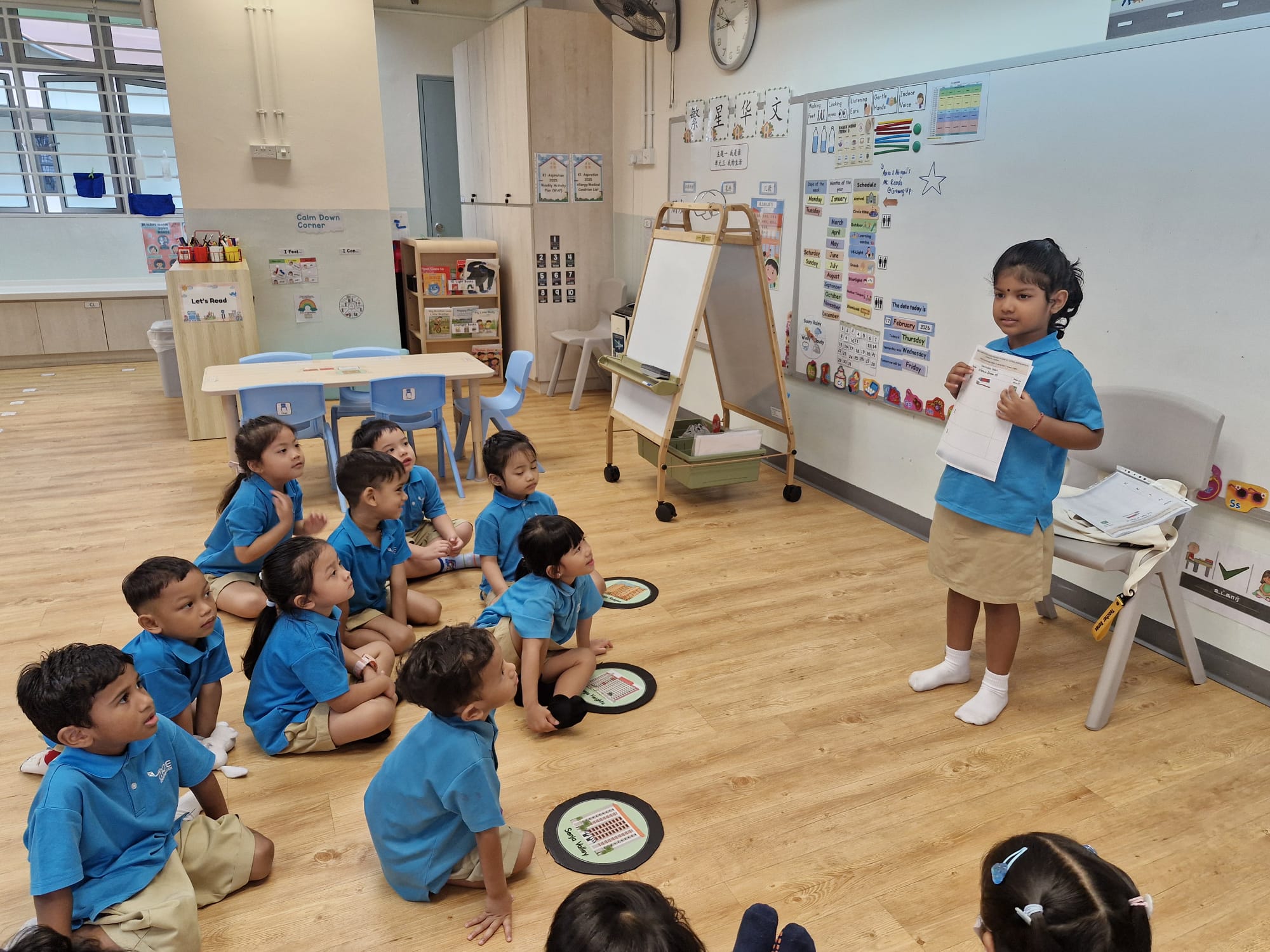 Day 5: Emotional Well-being - Sleep Well Teachers lead a class discussion about children’s bedtime routines and the activities they do before sleeping. Each child receives a bedtime chart to complete at home with their parents and later shares their routine with the class.